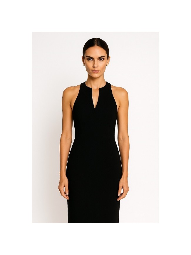 Vestido longo preto Ann Taylor, confeccionado em poliéster, forrado, frente única e fenda atrás até a altura do joelho. Tecido duplo no busto e alça com botão atrás do pescoço. Zíper atrás. Barbatana de sustentação nas laterais do busto. Medidas aproximadas: comprimento = 139 cm mais 3 de bainha; busto = 75 cm; cintura = 76 cm; quadril = 90 cm.